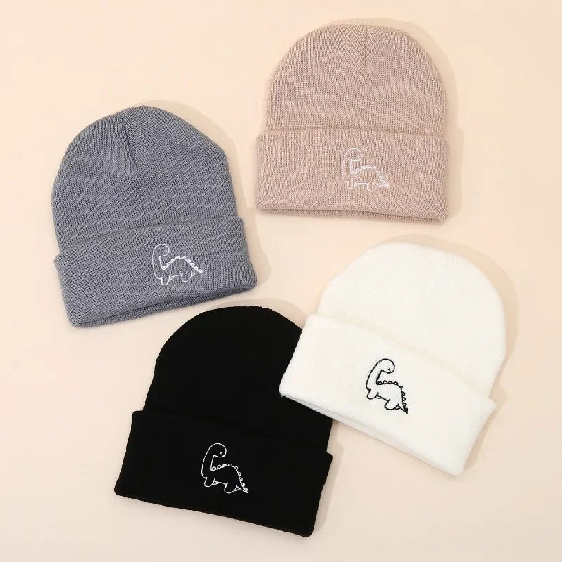 Cartoon Dinosaurs Knitted Hat for Toddler Cute Animal Embroidery Dinosaurs Kids Crochet Bonnet Autumn Warm 1-3 Year Baby Beaine