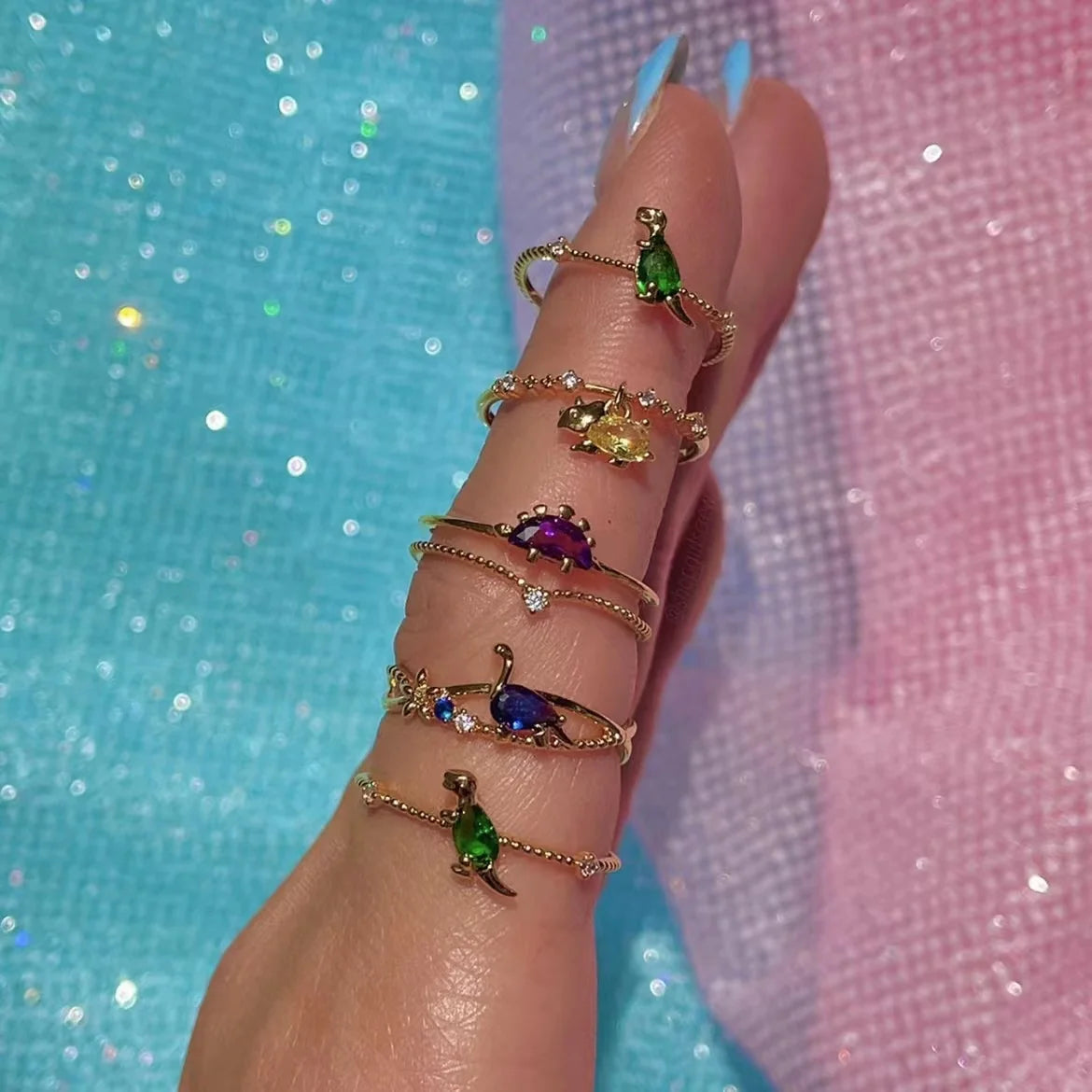 Ins Creative Personality Cute Animal Colortul Zircon Dinosaur Rings For Women Fashion Jewelry Party Wedding Rings Gift