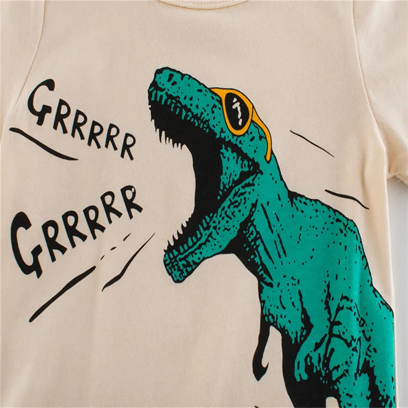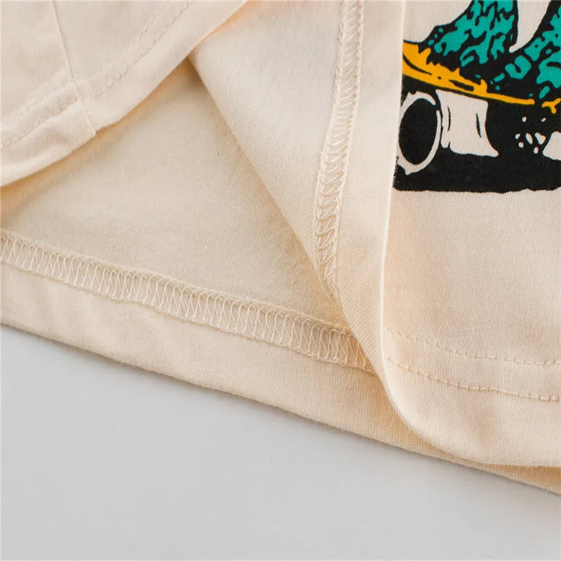 Jumping Meters Children's Summer T Shirts Dinosaur Print Hot Selling Short Sleeve Cartoon Toddler Tees Tops Boys Girls Clothing