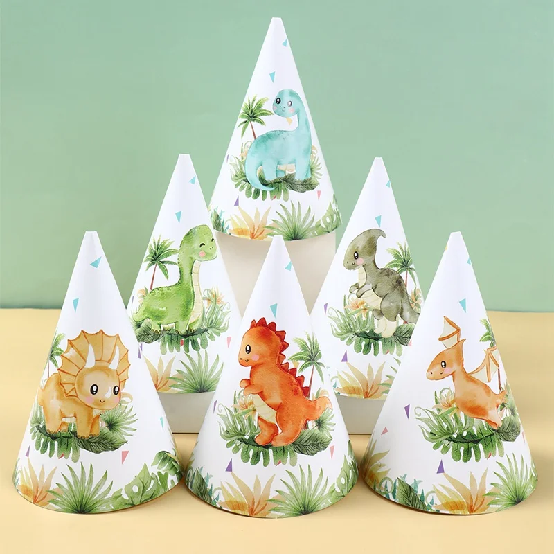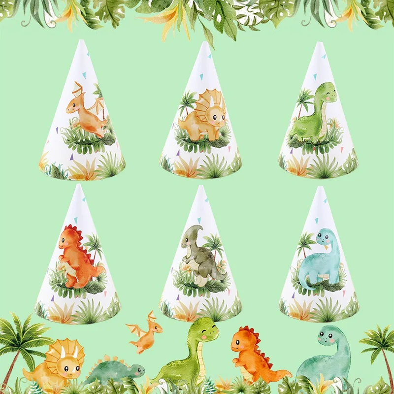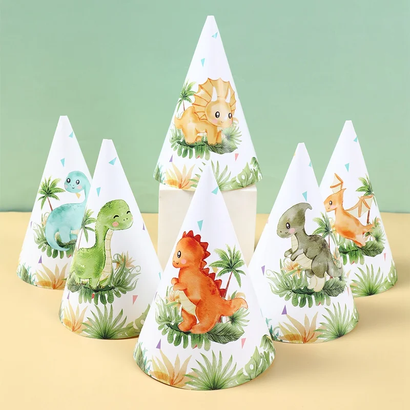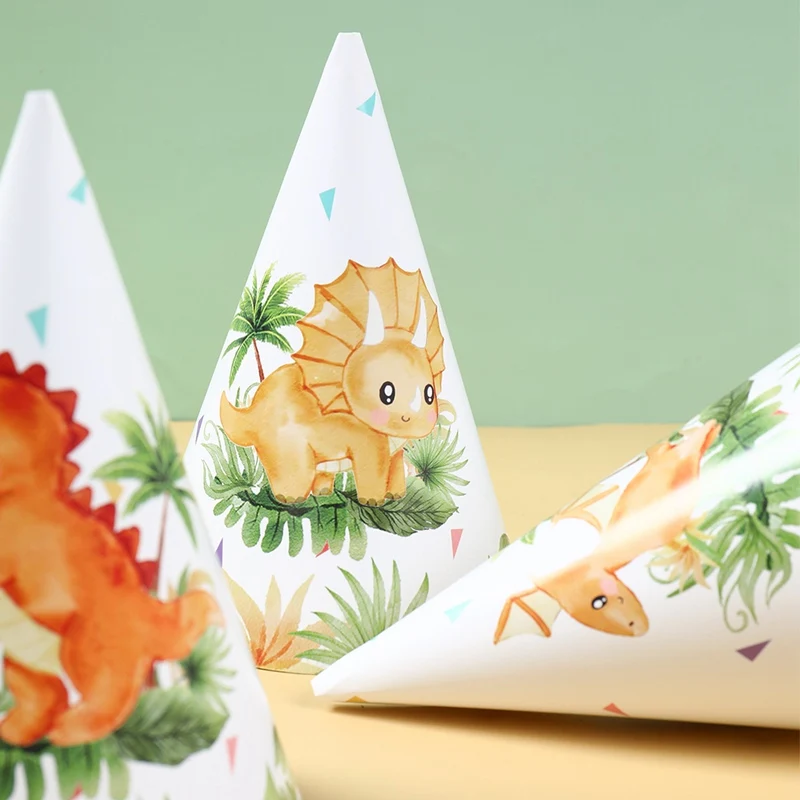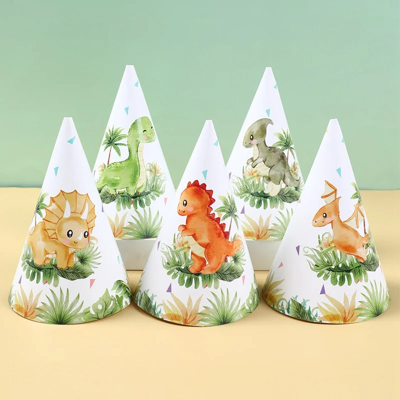 Jungle Dinosaur Theme Party Paper Hat Birthday Party Decorations for Kids Boys Cartoon Animal Party Caps Birthday Supplies