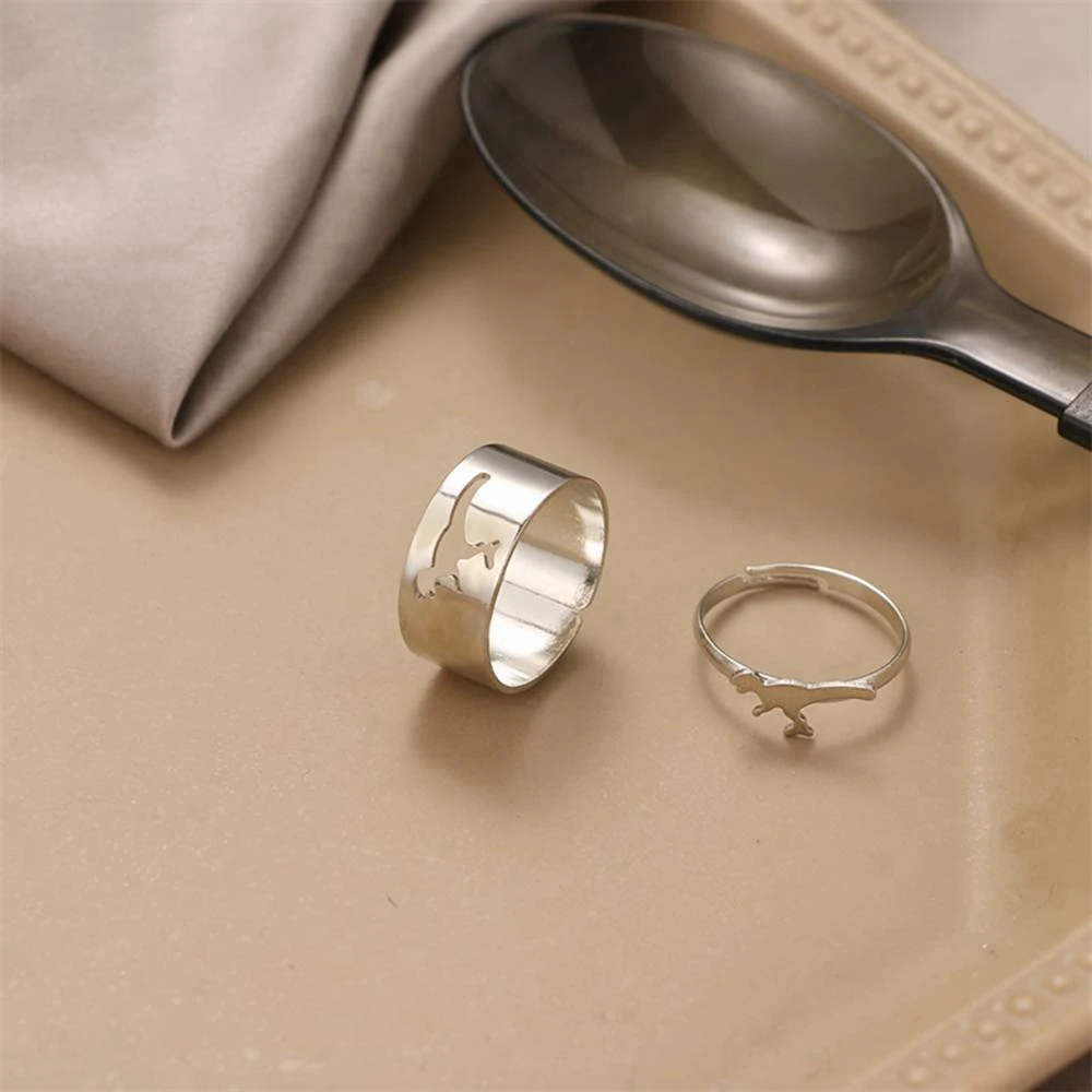 Trendy Silver Color Dinosaur Rings For Women Men Lover Couple Rings Set Friendship Engagement Wedding Open Rings 2021 Jewelry